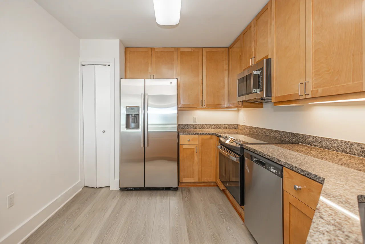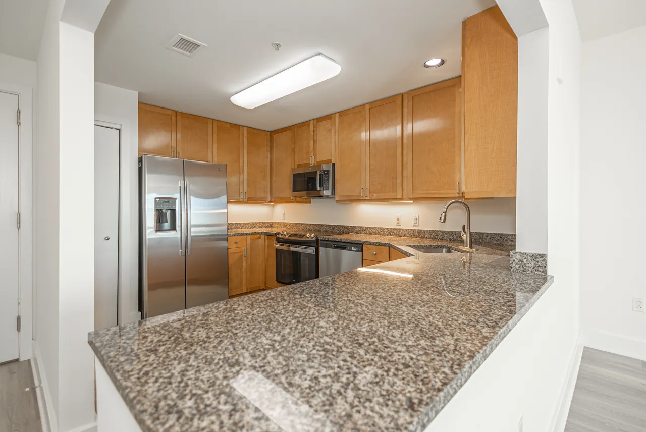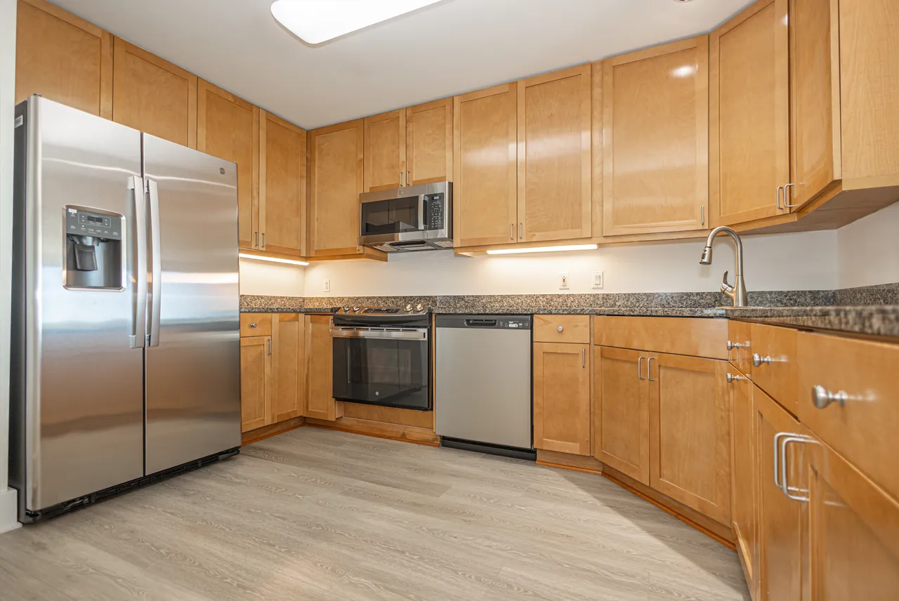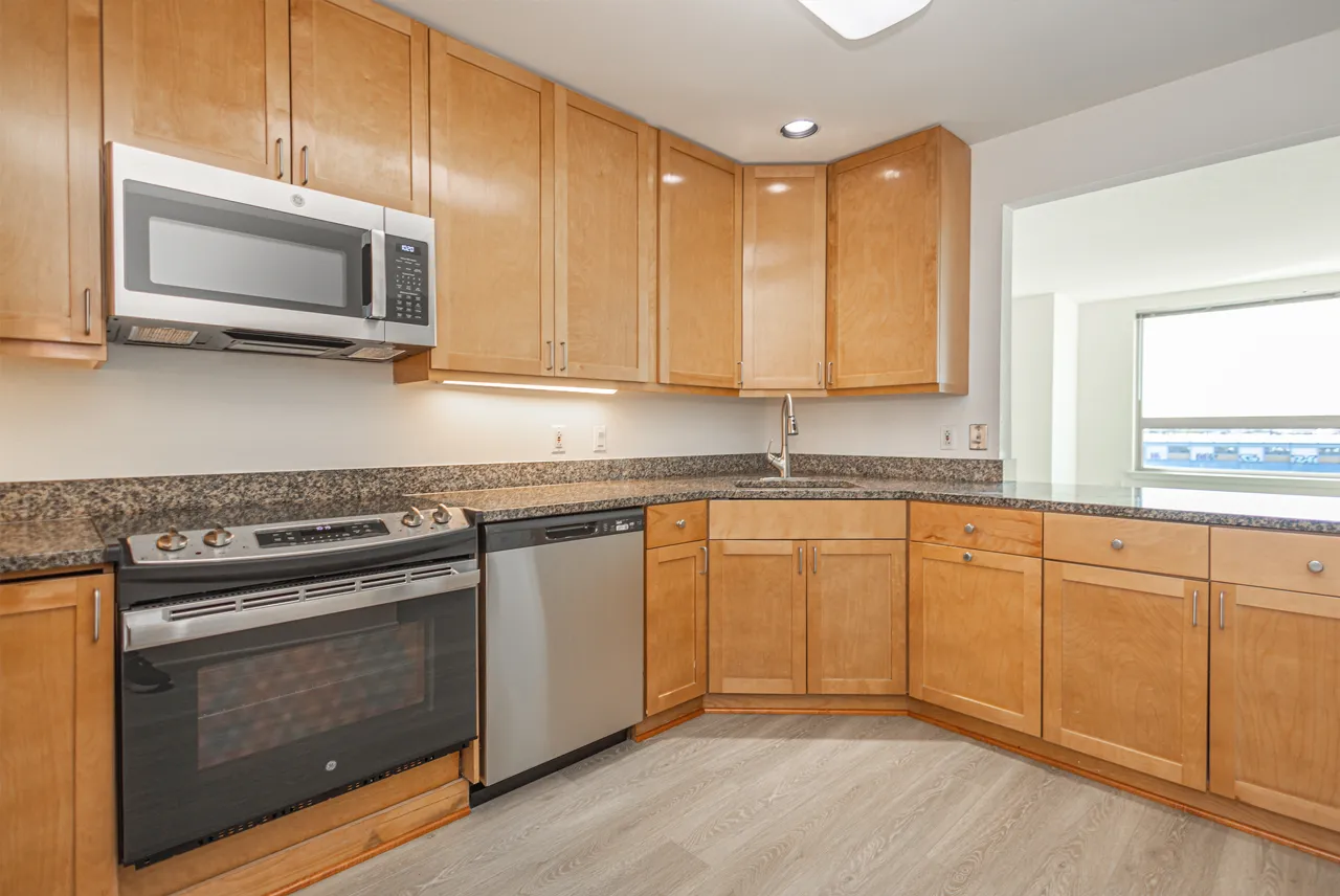 - Well-appointed kitchen with new GE® stainless steel appliances